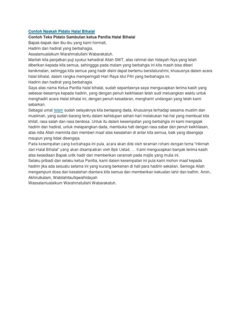Yang cukup menarik dari kegiatan halal bihalal ini adalah ceramah yang dibawakan oleh bpk m. Contoh naskah pidato halal bihalal pidato halal bi halal pidato halal bihalal pidato halal bihalal 3 bahasa . Berisi edukasi, motifasi, khutbah, materi ceramah, kajian kitab, kisah teladan, . Wb selamat pagi dan salam sejahtera bagi kita semua kepada yang terhormat. Abdul rohman dengan tema "pembelajar".